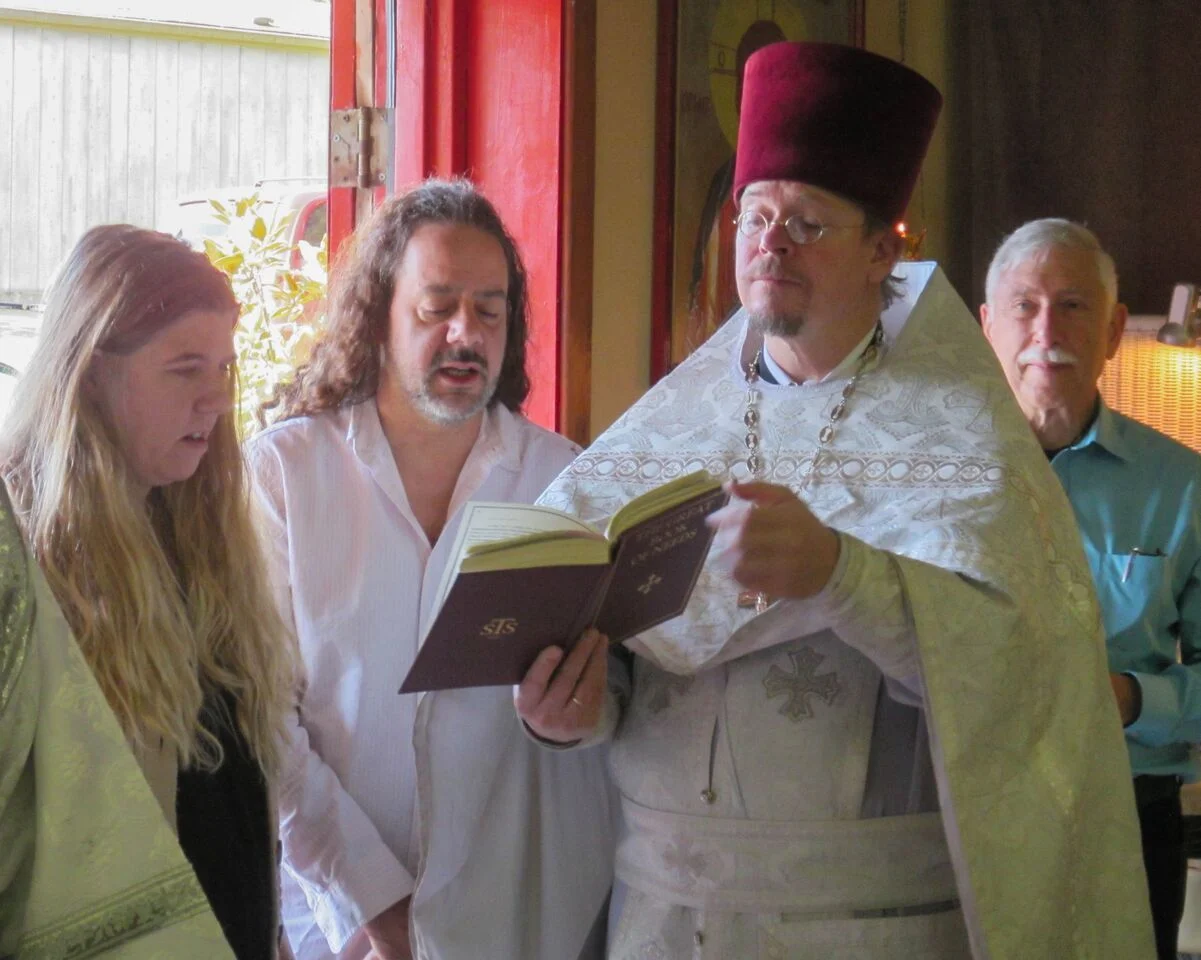 Two of our catechumens making their statement of the Orthodox faith prior to Holy Chrismation.